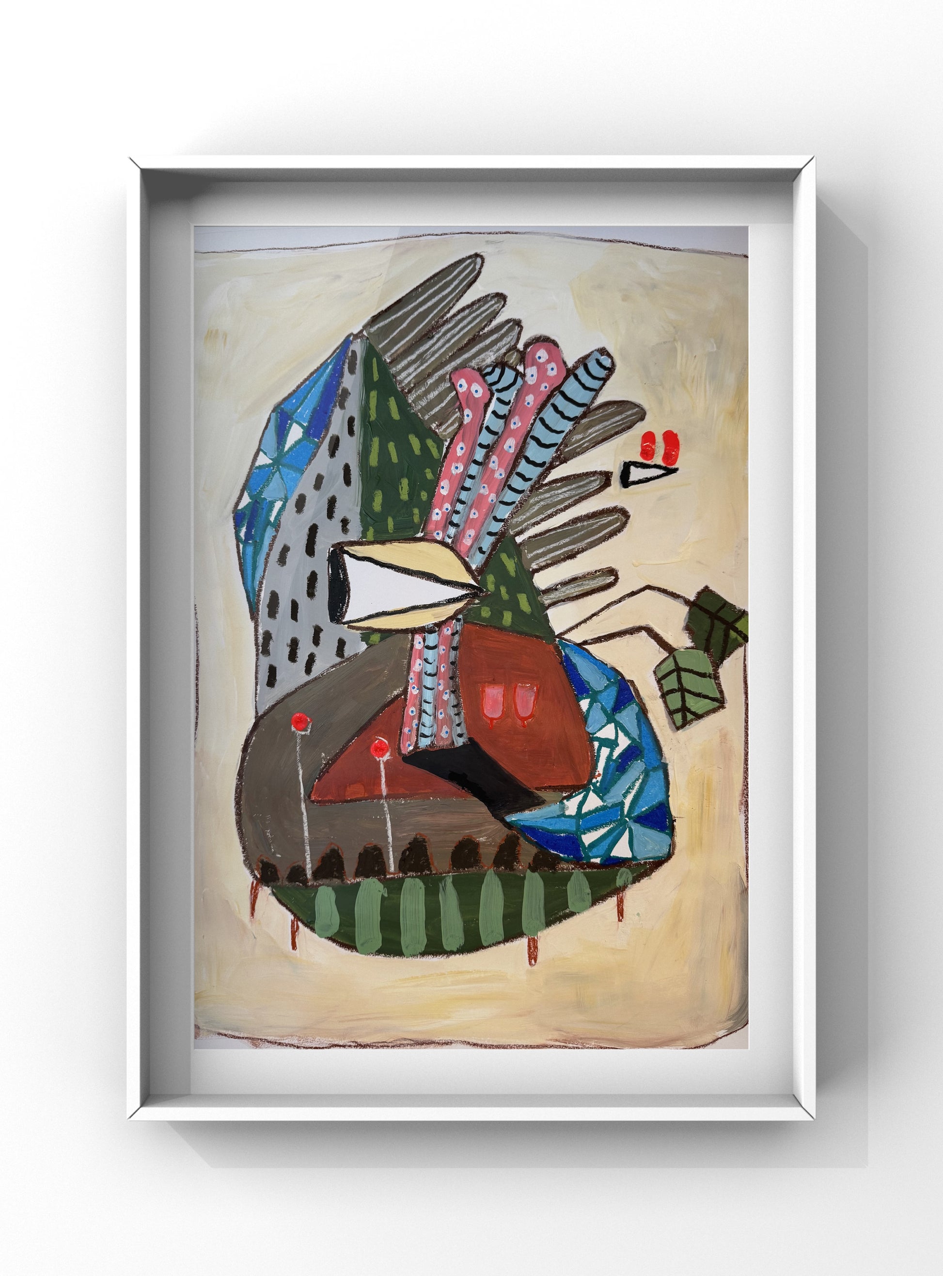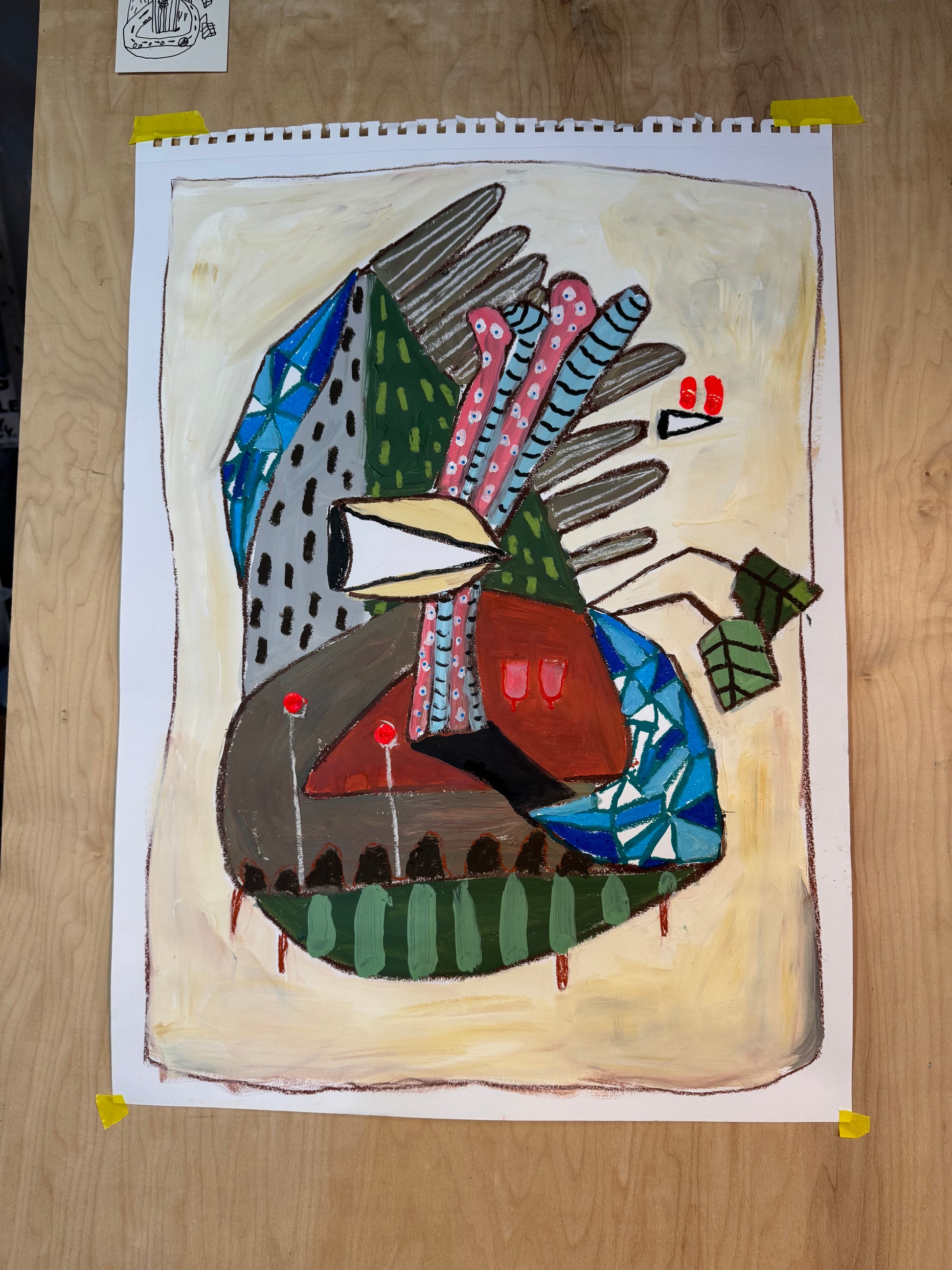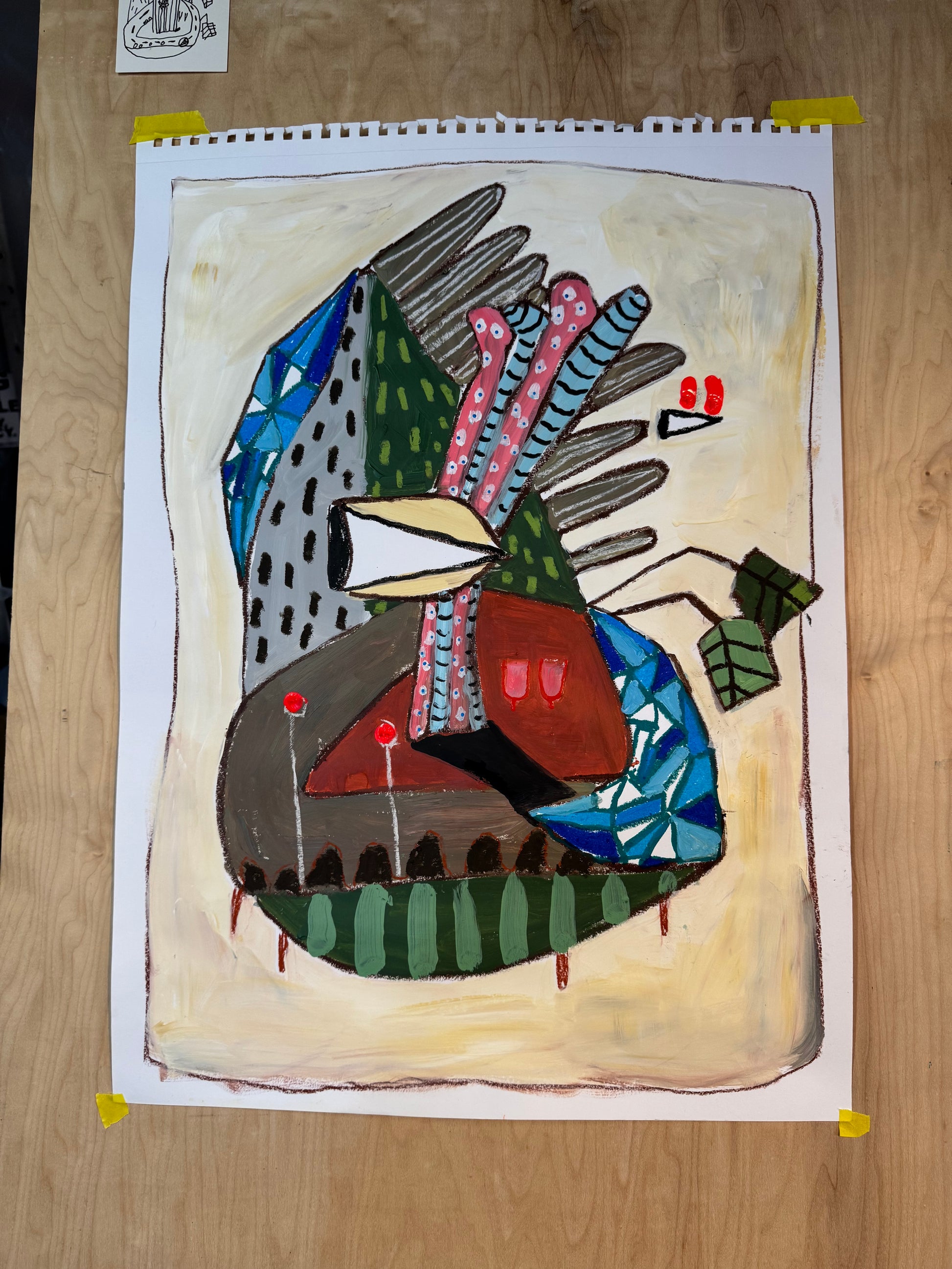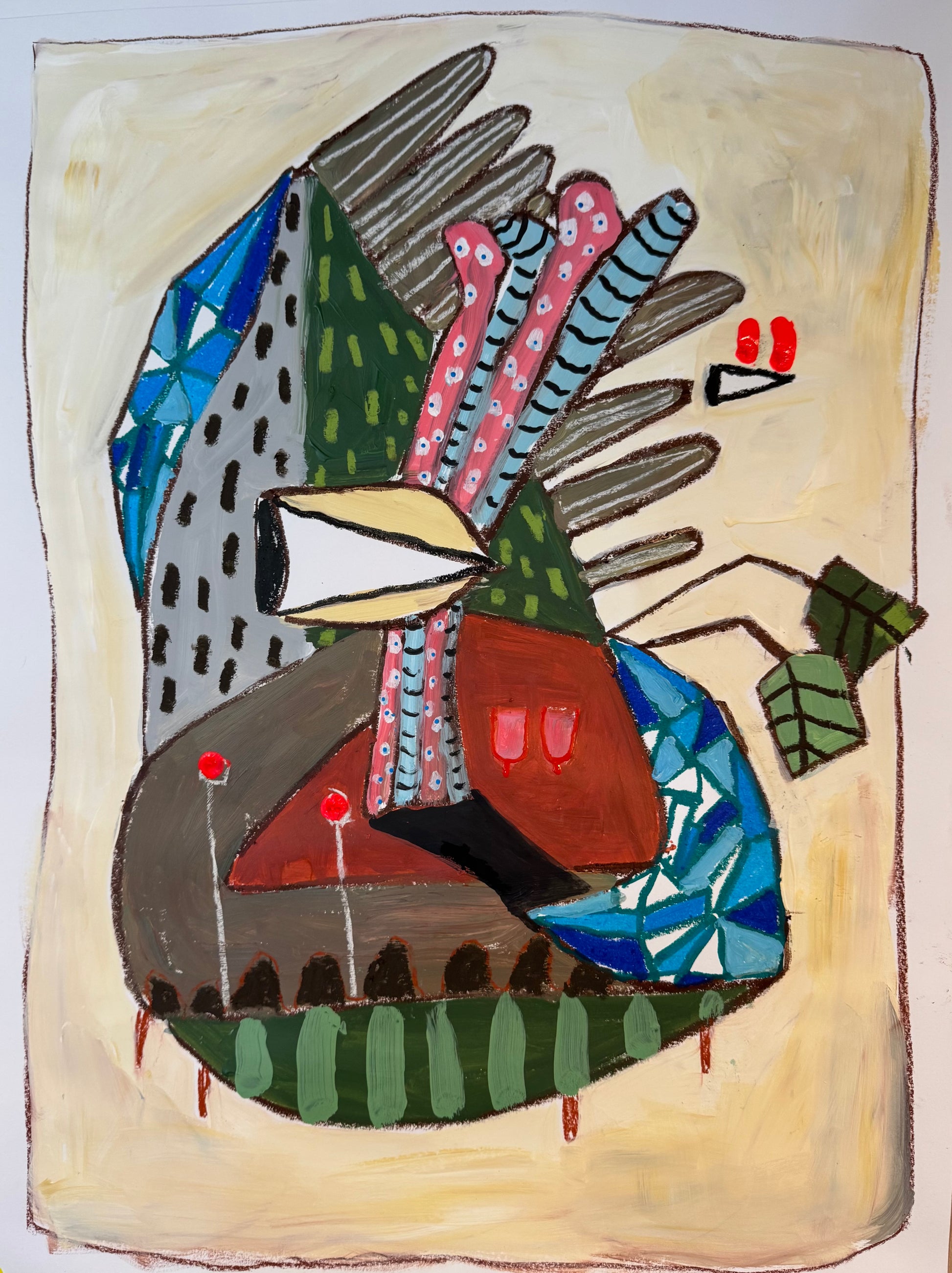 Acrylic, sumi ink, graphite and oil stick on 18 x24 in paper