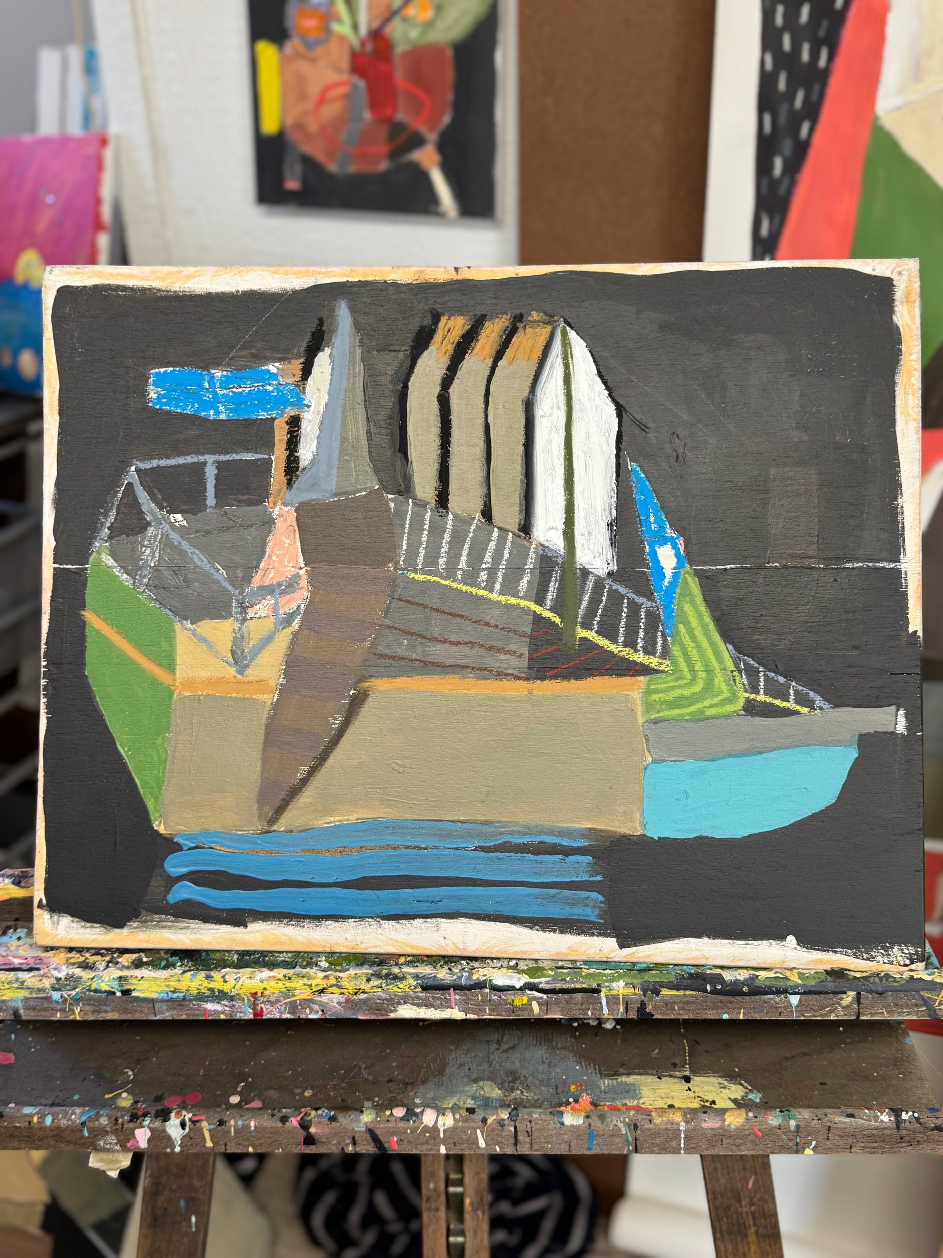 Acrylic, oil stick, sumi ink, graphite on 16x20 board
